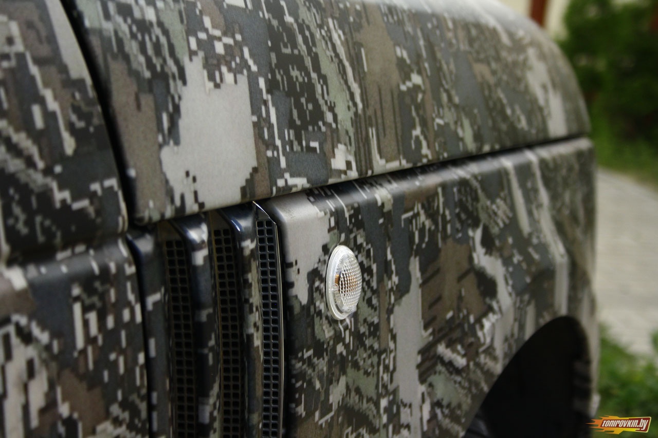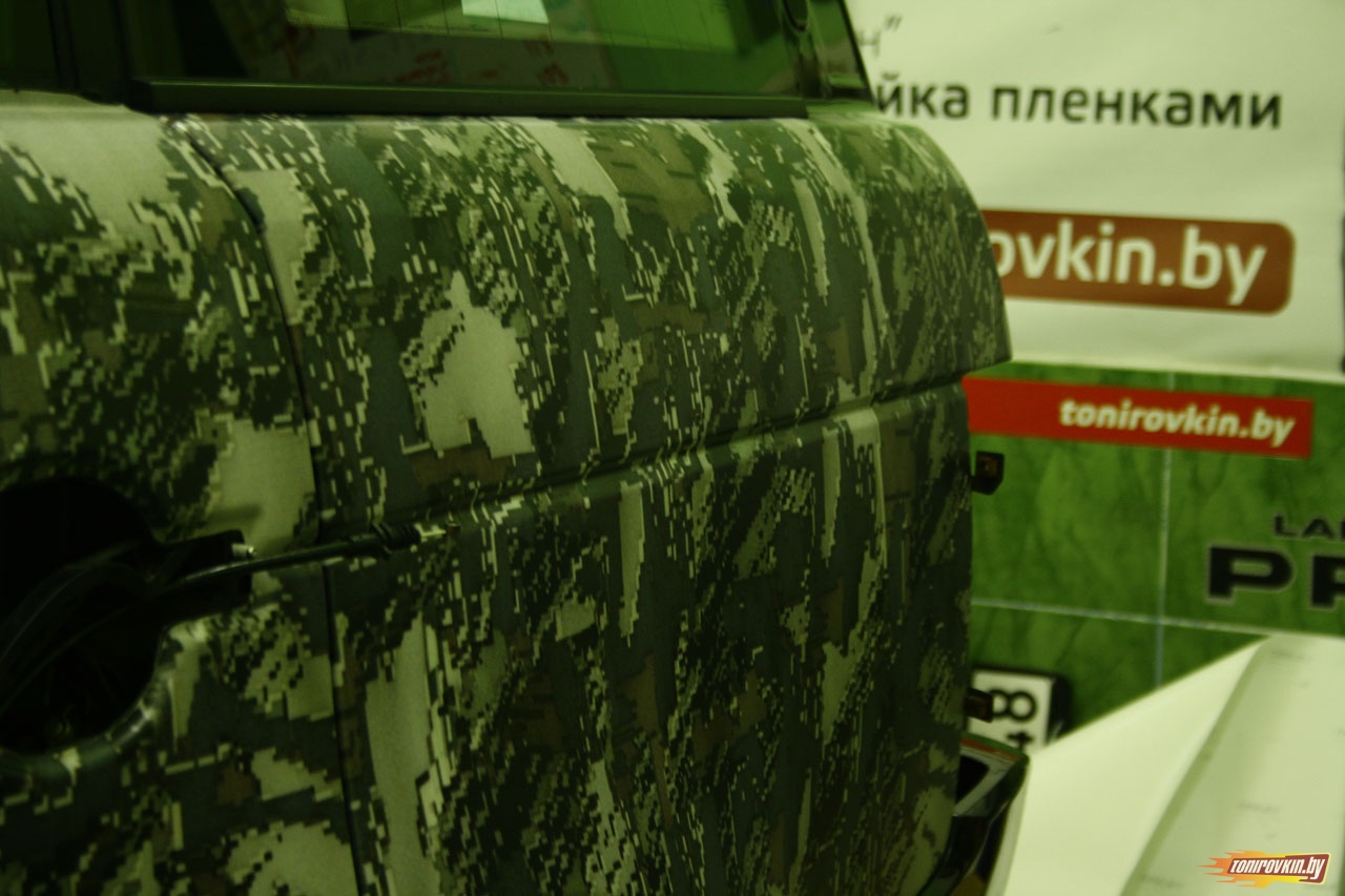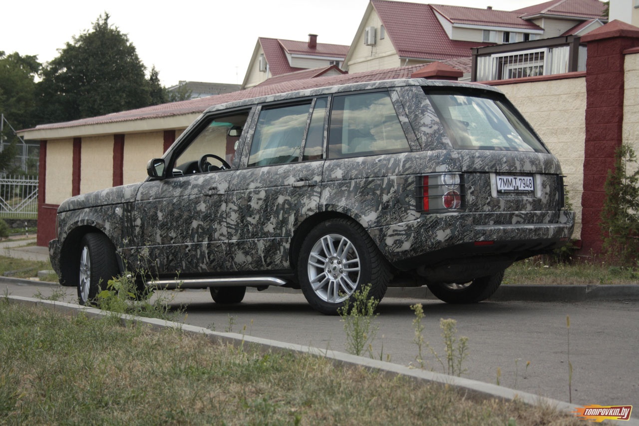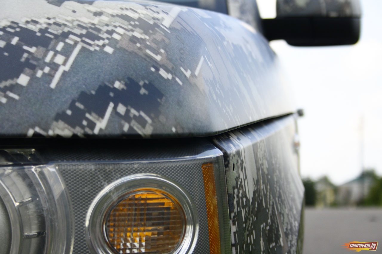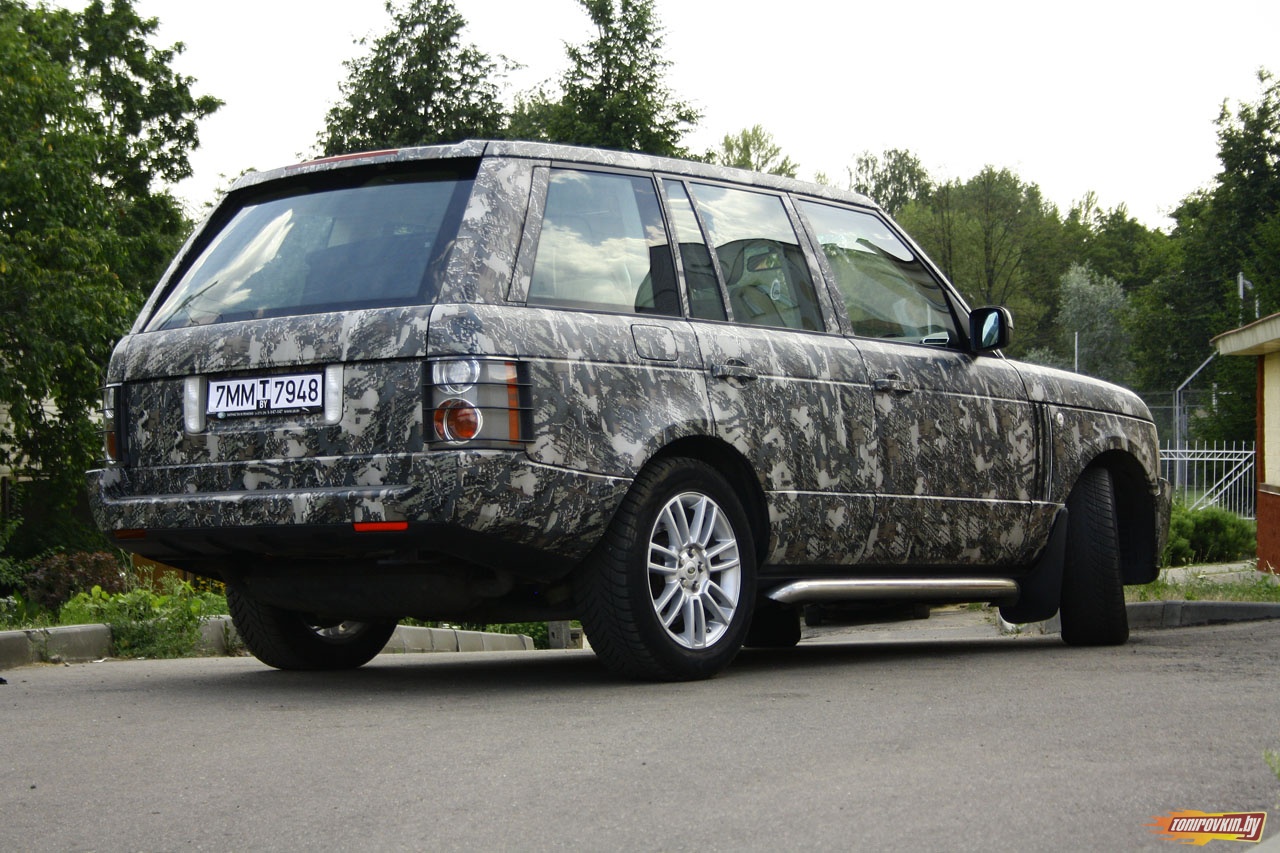 Главная Галерея работ Оклейка пленкой под цифровой камуфляж Range Rover Vogue