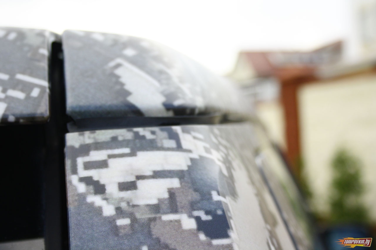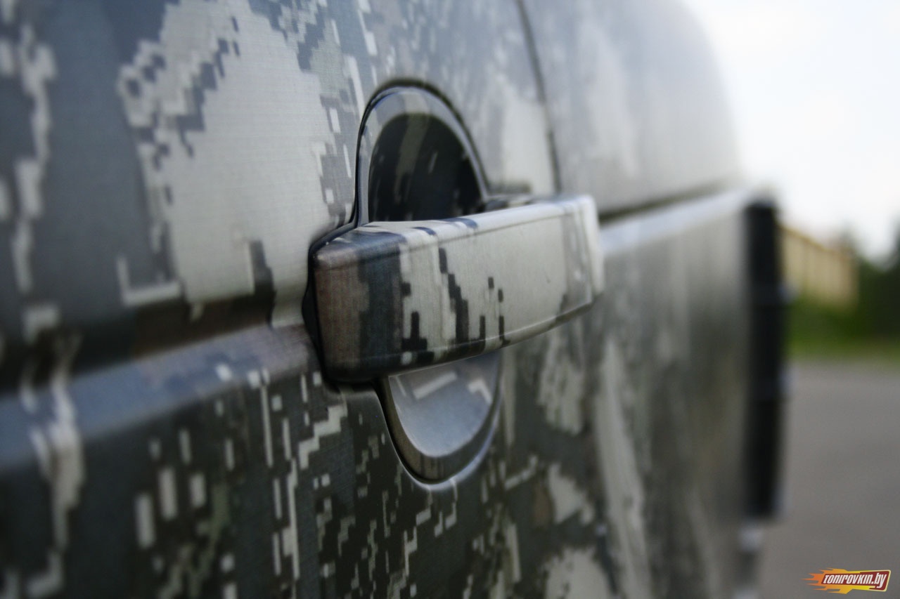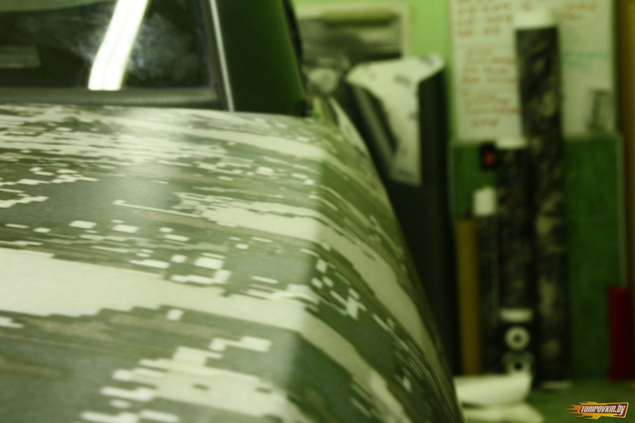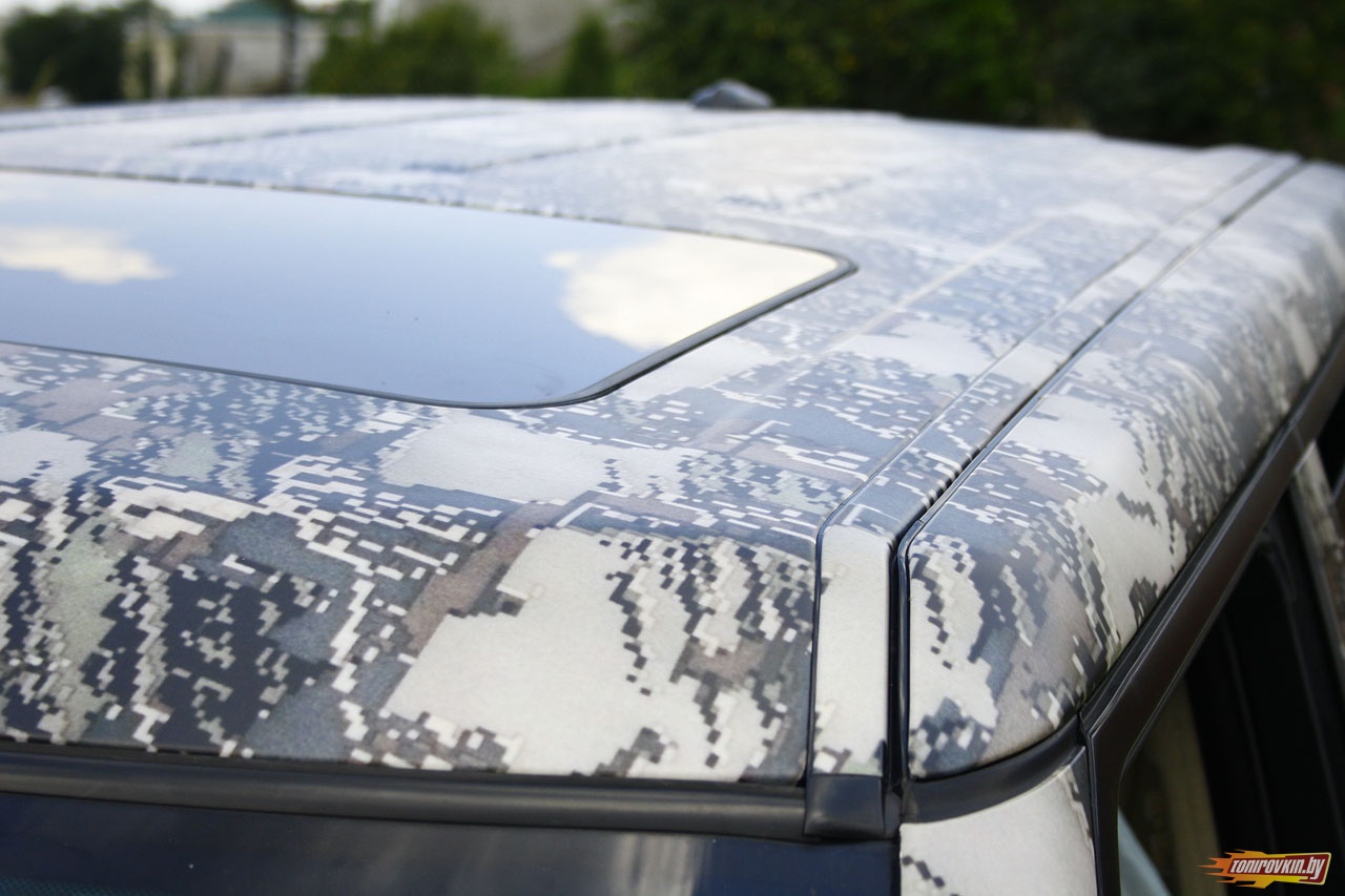 Главная Галерея работ Оклейка пленкой под цифровой камуфляж Range Rover Vogue